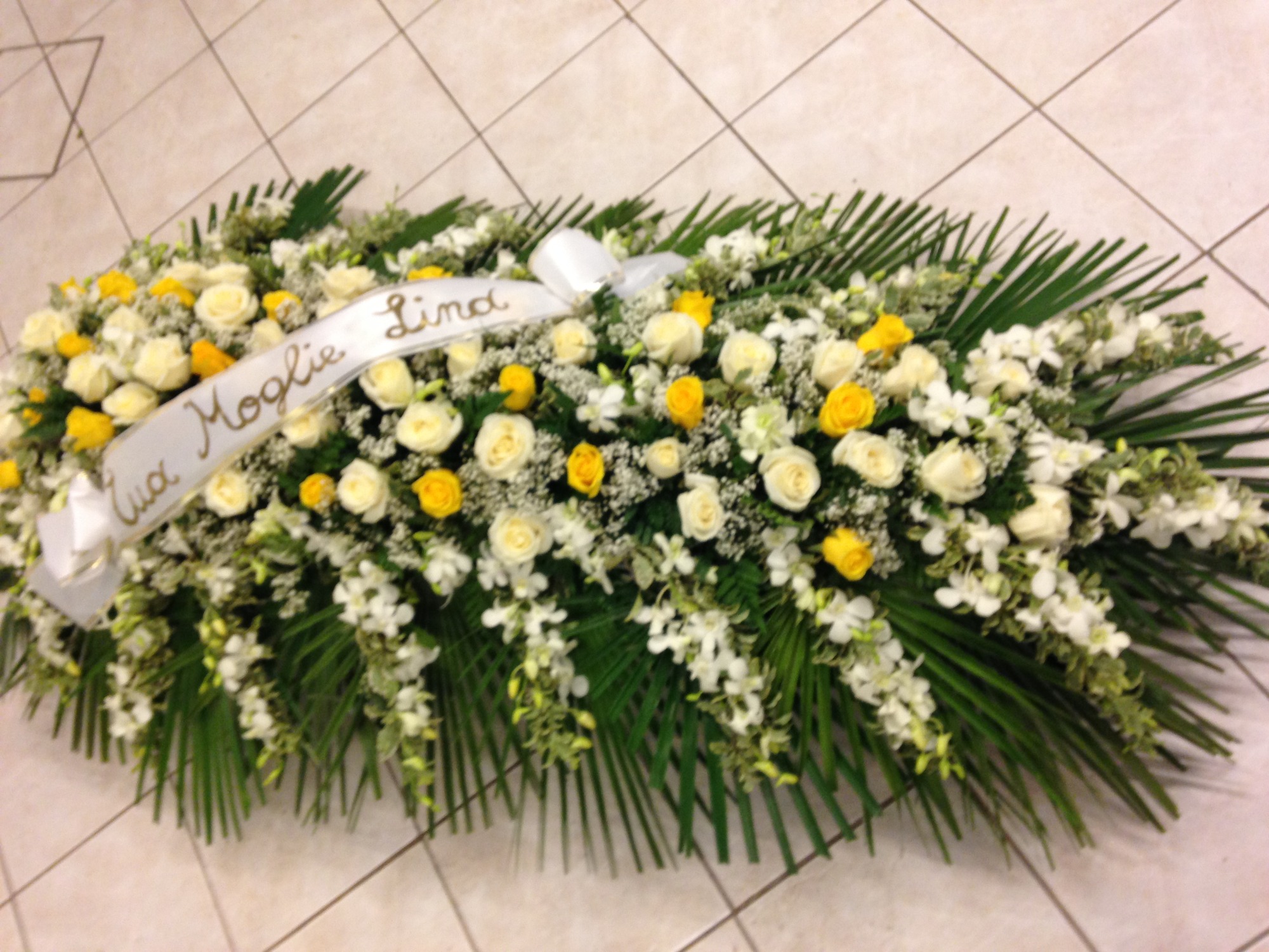 realizziamo bouquet, mazzi funebri, composizione su ciotola o cesto, cuscini floreali funebri, copribara e corone funebri; tutti completamente personabilizzabili e realizzati a regola d'arte, con la possibilità di inserire un messaggio o un nastro commemorativo